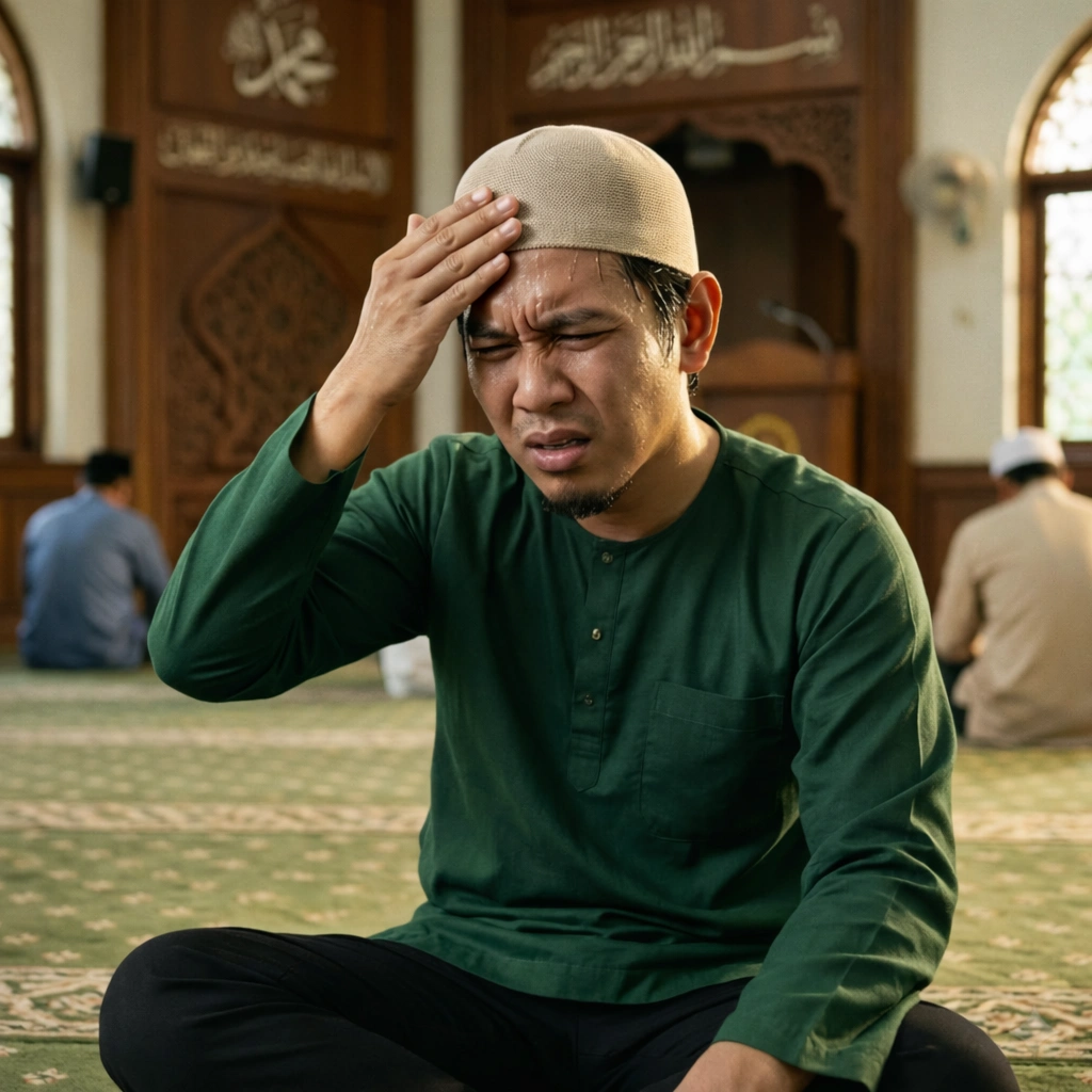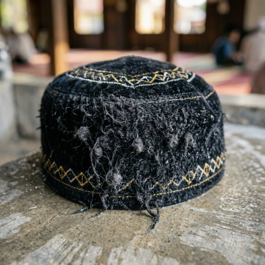❌ Kopiah biasa tidak telus udara, kepala cepat berpeluh dan rasa terperangkap ketika solat.