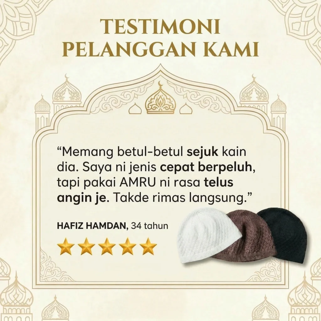 AMRU Kopiah Premium Dengan Bahan Berkualiti Serta Telus Udara Untuk Kepala Lebih Sejuk!